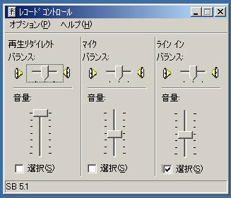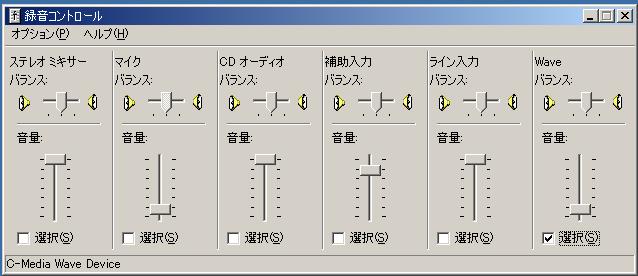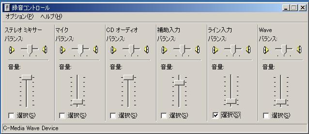 C-Media Wave Device、SB 5.1 ともに録音ソースはライン入力を選択する