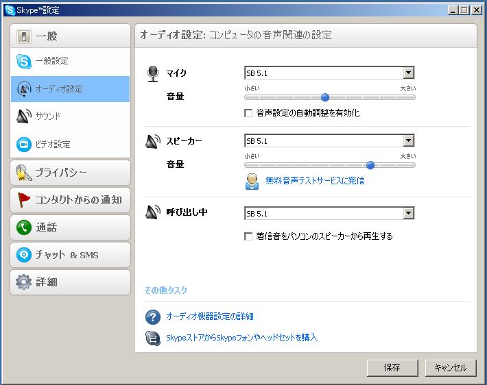 Skypeのマイク、スピーカー、呼び出し音にはSB 5.1を割り当てています。